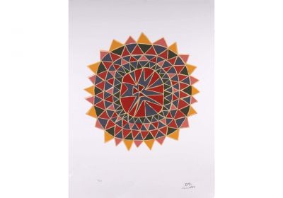 A great speaker, Ben was strongly involved in land rights and community issues. He worked for the Aboriginal Development Commission and officially opened Waringarri Aboriginal Arts in the 1980s. It wasn’t until 2011 that Ben began painting regularly and carving at the centre. His painting practice focuses on depicting his country and memories of when he was a young man mustering cattle, from his own unique perspective. In his latest series, he employs triangular designs of juxtaposed coloured ochre to depict the rivers, mountains and ranges of his country while also commenting on issues that are close to his heart. In 2015 he was the first Indigenous person to win the prestigious John Fries Award for emerging artists.