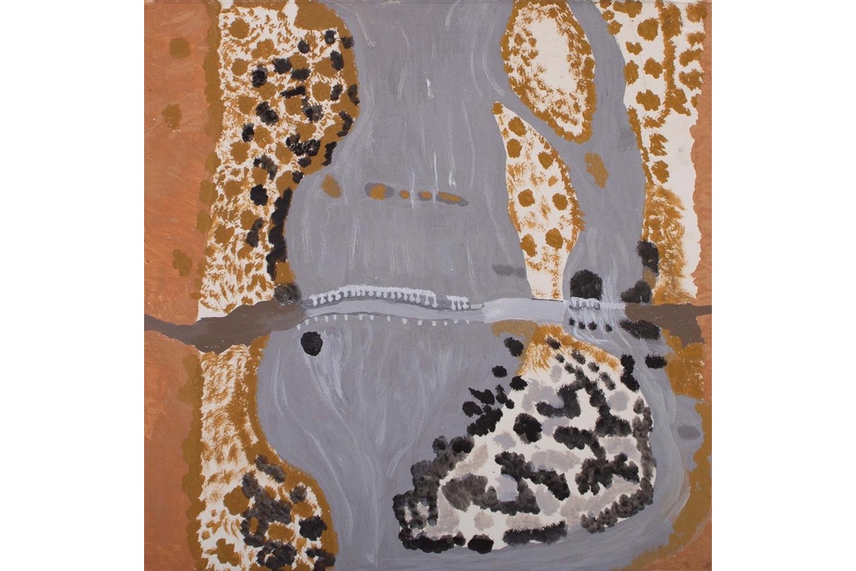 This is my family's Country. I was born near the billabong. This area I have painted is Ivanhoe crossing where we used to walk, fish and swim when I was child. The billabong at the old Ivanhoe station was we used to eat turtle, little perches and waterlily. The water Lilly has three edible parts - the root, the stem and the flowers. This was important bush food for us when we used walk across country. There was good bush tucker in the river too - lot's of fish - those days were good and we were free to cross. You didn't have to think about crocodiles in those days. I love my Country. When I paint it reminds me of the elders who taught us how to hunt for food and tell us stories about our Country.