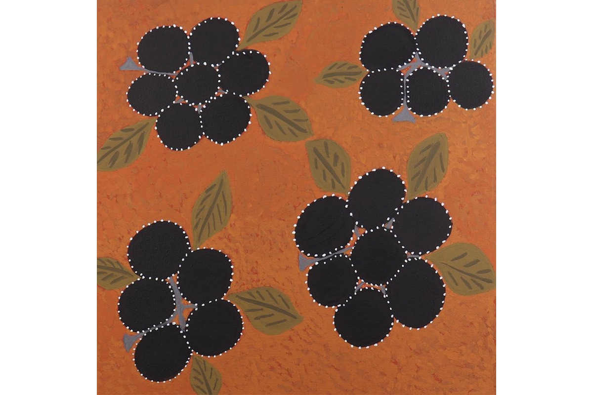 "I was born in Kununurra. I now have five children. I watch the old people painting - that's how I got started. It teaches me about Country. I am ready to take over the stories of my mother.  I learnt from her to tell her stories and pass them on to my children and grandchildren."
