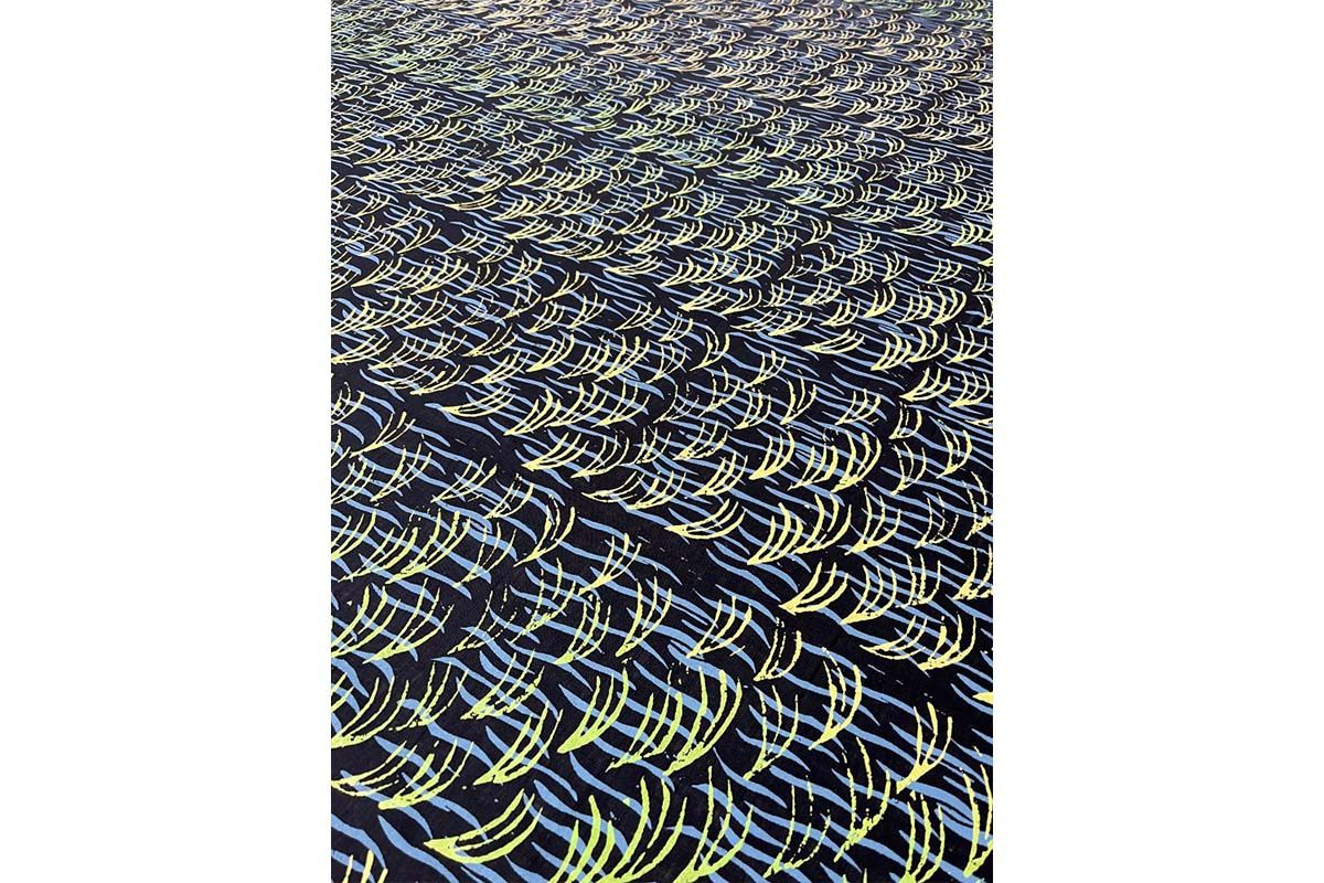 Screen-printed fabric by Waringarri artists.