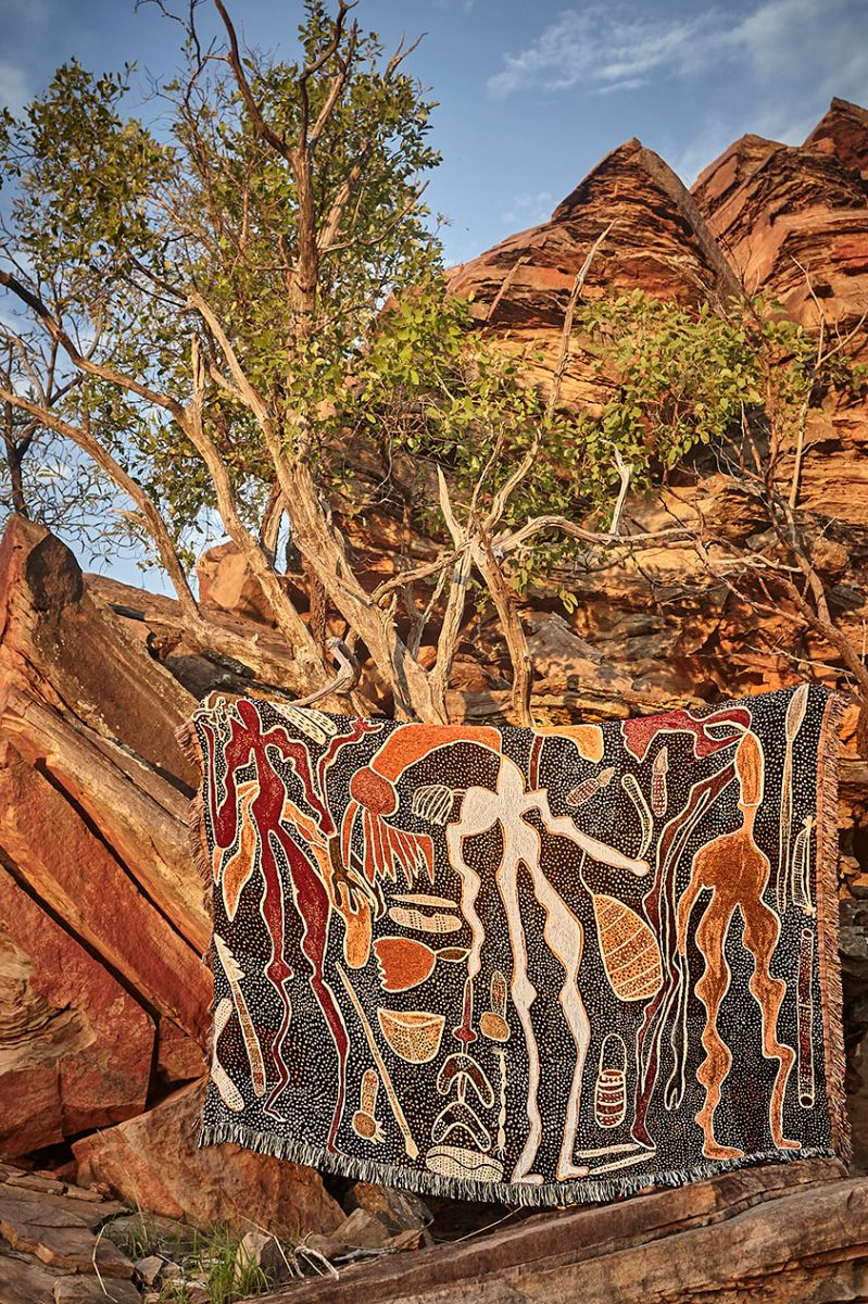 Flash Minky is a West Australian company that has collaborated with Waringarri artists. Made in the USA from 100% woven recycled cotton.