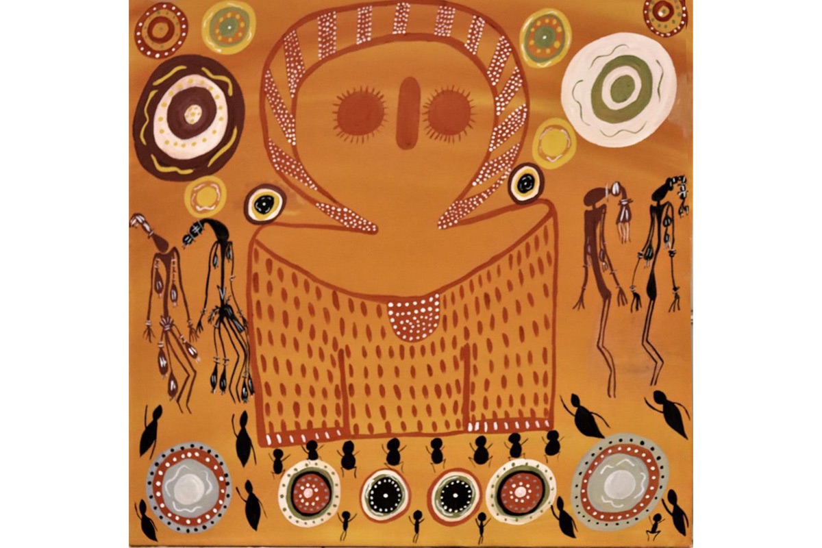 Long ago my people believed that the Wandjina was a God. The Wandjina heard my people cry out to him for food and water. Wandjina gave them food and flooded the lands. He made puddles from the running water. The rock pebbles shine as the water running over them would rush out to sea. The Wandjina also had helpers like the Spirits.
