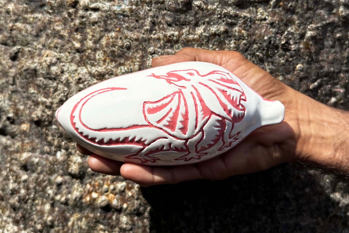 These animals carved onto the ceramic Boab are part of an ongoing telling of the stories of where I grew up since I was a kid. They are special to us as both totems and for food. They are important cultural figures. These animals occur right from my father’s side in the west in Broome /Karajarri Country through my mother’s land Gija Country in the East Kimberly.